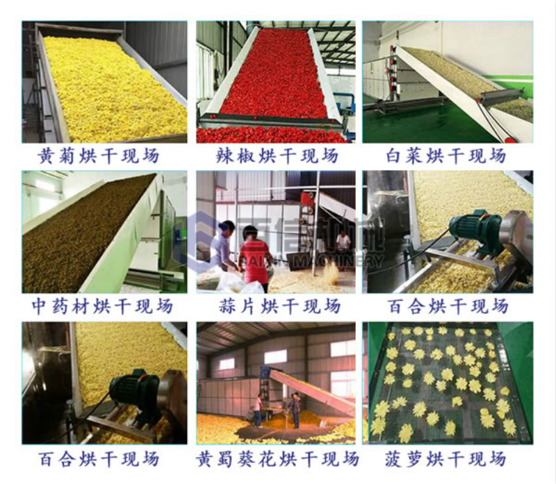 百信多層連續式烘干機脫水干燥迅速, 操作方便,效率運行。能滿足大批量連續生產的需求,網帶式干燥設備廣泛應用于食品(如面條、面皮)、干果(大棗、巴旦木、腰果、開心果)、花茶(玫瑰花、紅薯、金銀花、山楂花)、農副產品(如玉米、紅薯烘干袪潮)、脫水蔬菜(如大蒜、紅薯、紅薯、辣根、洋蔥、白菜干、生姜、小香蔥、辣根、菠菜)、瓜果(如紅薯、薯片、紅薯、葡萄干、哈密瓜)、中草藥、(連翹、黃蜀葵、枸杞、)水產品、土特產品、飼料及化工原料等加工之片狀、條狀、塊狀和顆粒狀物料的脫水干燥作業。